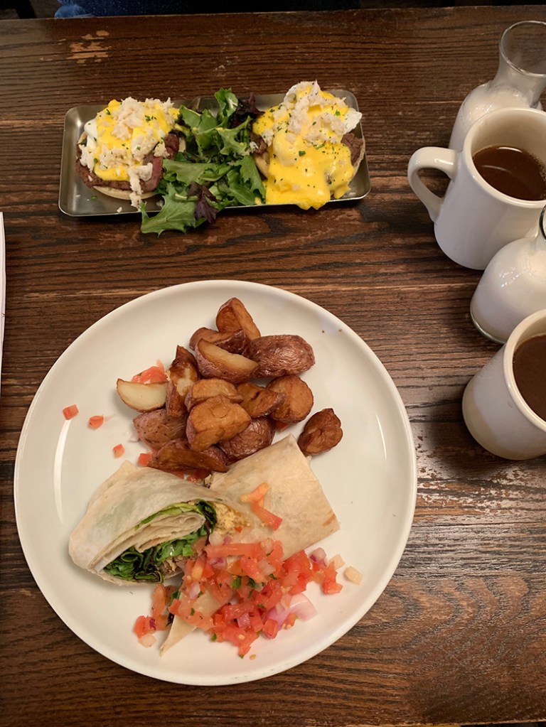 V neděli sice hlásili sněhové přeháňky, ale přesto jsme se rozhodli vyrazit na výlet. Ten jsme začali pořádným brunchem v Ale Mary‘s v Royal Oak. Byl to moc pěkný a příjemný podnik, kde se nás hned ujal milý chlapík. Vysvětlil nám, jak to u nich chodí a přinesl hrnky s kávou a skleničky s ovesným mlékem. V nabídce byly kromě snídaní, brunchů a obědů také piva a likéry. Nevíme, jestli je tady normální si dávat pivo v neděli v deset ráno, ale asi to prozatím vynecháme. Vybrali jsme si dobroty, objednali a chlapík s pěkným pupíčkem nám stále doléval kávu a nosil nové mléko. Podnik se začal zaplňovat a panovala tam příjemná atmosféra. Povídáme si a čas nějak plyne, když nás najednou přerušuje chlapík a omlouvá se, že se jim na mém burritu něco nepovedlo a dělají ho znovu. Po několika minutách máme dobroty na stole. Pijeme už několikátý hrnek kávy. Než ho totiž stihneme dopít, máme zase doplněno až po okraj. Po jídle děkujeme a prosíme o účet. Chlapík nám vysvětluje, že to máme dneska zadarmo, když jsme museli čekat tak dlouho. Cože, vždyť jsme čekali zhruba dvacet minut? Ani jeden nechápeme a Jára odpovídá, že to takhle nefunguje. Chlapík se směje a ujišťuje nás, že to nemáme řešit, mají taková nařízení. Sousedé od vedlejšího stolu se také přidávají k rozhovoru a potvrzují, že to tak opravdu chodí. Několikrát děkujeme, necháváme na stole spropitné a loučíme se. Sousedé na nás ještě při odchodu volají: “See ya next week!” Tak tady určitě nejsme naposledy! Akorát příště nesmím vypít litr kávy.