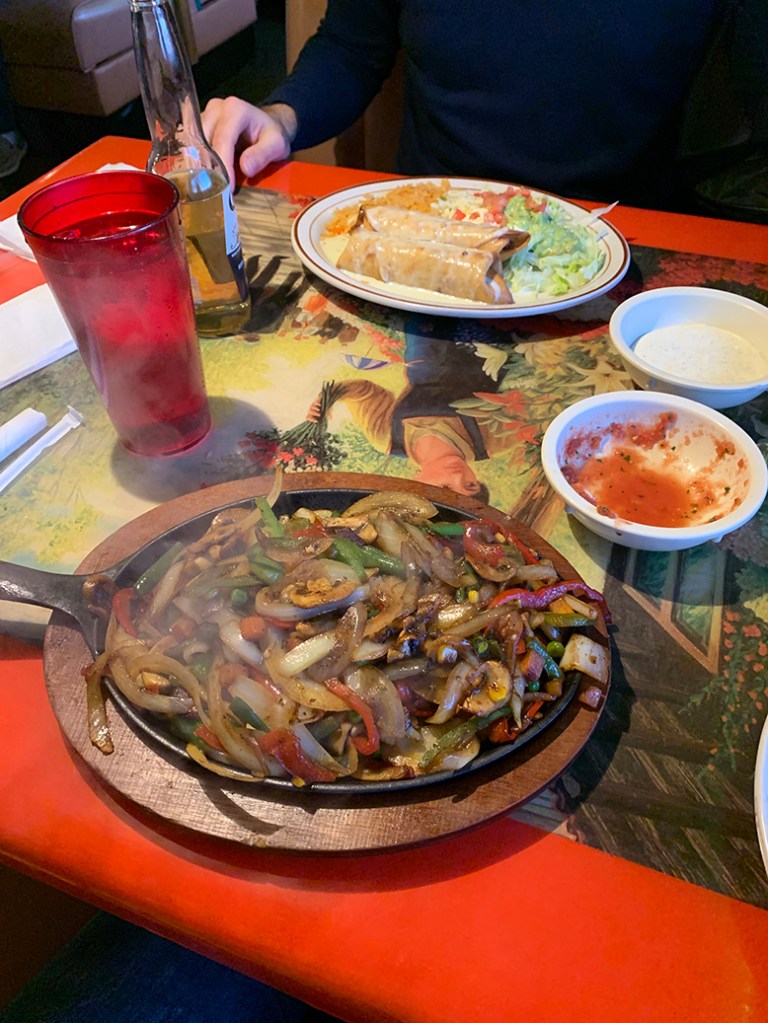 Přejeli jsme šestiproudou silnici a zaparkovali u mexické restaurace Azteca. U vchodu už čekala moc milá slečna a dala nám pořadové číslo. V restauraci bylo narváno, ale vše fungovalo tak dobře, že jsme čekali jen pár minut. Objednali jsme si a probírali celý týden. Během mého výměnného pobytu mě brala “host family” do restaurací opravdu často, Jára také byl v různých podnicích, ale spolu jsme vlastně na večeři ještě nebyli. Jídlo přinesli během pikovteřiny a byla ho samozřejmě americká porce, tedy hromada. Kdyby nás to napadlo dřív, nemuseli jsme se nacpat k prasknutí a mohli si vzít zbytek s sebou. Kdybychom chodili na večeře každý večer, byli by z nás velmi rychle otesánci.