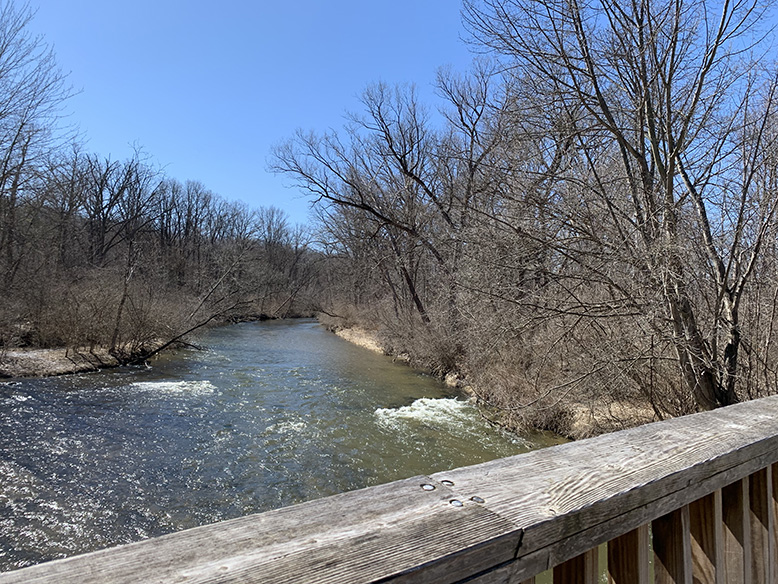 V parku to bylo moc pěkné. U parkoviště jsme se dočetli, že zde mimo jiné vede cyklotrasa, která pokračuje další desítky kilometrů oběma směry. Až budeme mít kola, určitě podnikneme nějaký výlet a zajedeme si třeba až k jezeru St. Clair u Detroitu. Park jsme prošli křížem krážem, objevili dětské hřiště, místa na piknik, velodrom, kopec upravený na sáňkování a bobování a spoustu běžeckých cestiček. Bylo pěkně a tak jsme cestou potkali poměrně dost lidí, kteří taky vyrazili na čerstvý vzduch. A všichni nás samozřejmě s úsměvem zdravili.