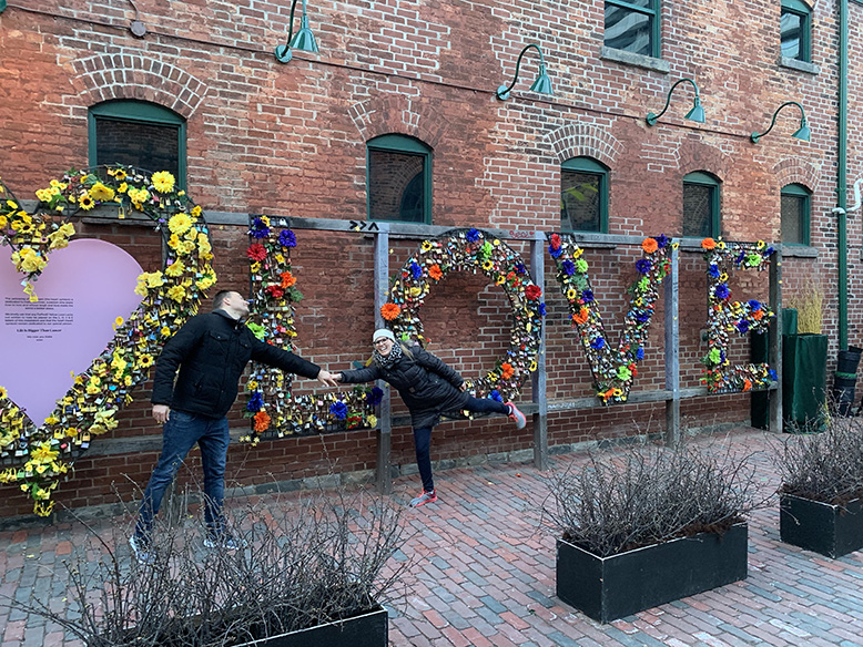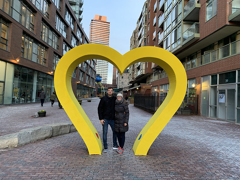 Na trhu jsme se sešli s našimi kamarády a nakoupili nějaké dobroty na večeři. Cestou domů jsme prošli známý PATH, což je systém tunelů, které vedou pod městem. Když je v zimě mínus třicet, tak se celkem hodí. O víkendu tam bylo málo lidí, protože tunely využívají hlavně lidé, kteří v Torontu pracují. Zalezou do tunelu u svého bytu a vylezou v práci. Nepředstavujte si ale podzemní chodby jak v Táboře, je to normální nákupní centrum, kde jsou restaurace a obchody. Občas musíte prolítnout točitými dveřmi, které se prý přes týden točí šílenou rychlostí, když jimi proudí tisíce lidí. Došli jsme až do nákupního centra Eaton Centre, kde jsem byla před deseti lety. Tam jsme se vůbec nezdržovali, protože praskalo ve švech asi stejně jako naše nákupní centra o víkendu. Donesli jsme nákup domů a připravili večeři. Večer jsme se ještě vydali do „The Distillery Historic District“. To je takový malý Karlín. Cihlové domy v industriálním stylu jsou večer pěkně nasvícené a najdete tam bary, hospody a obchůdky. Byla tam naprosto úžasná atmosféra a moc se nám tam líbilo. Prošli jsme si celou oblast a zamířili přes park domů. Cestou jsme si užili nasvícenou CN Tower a večer jako správní „kaďaňani“ koukali na NHL.