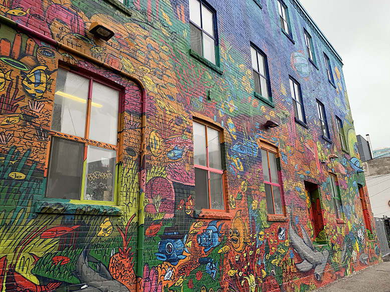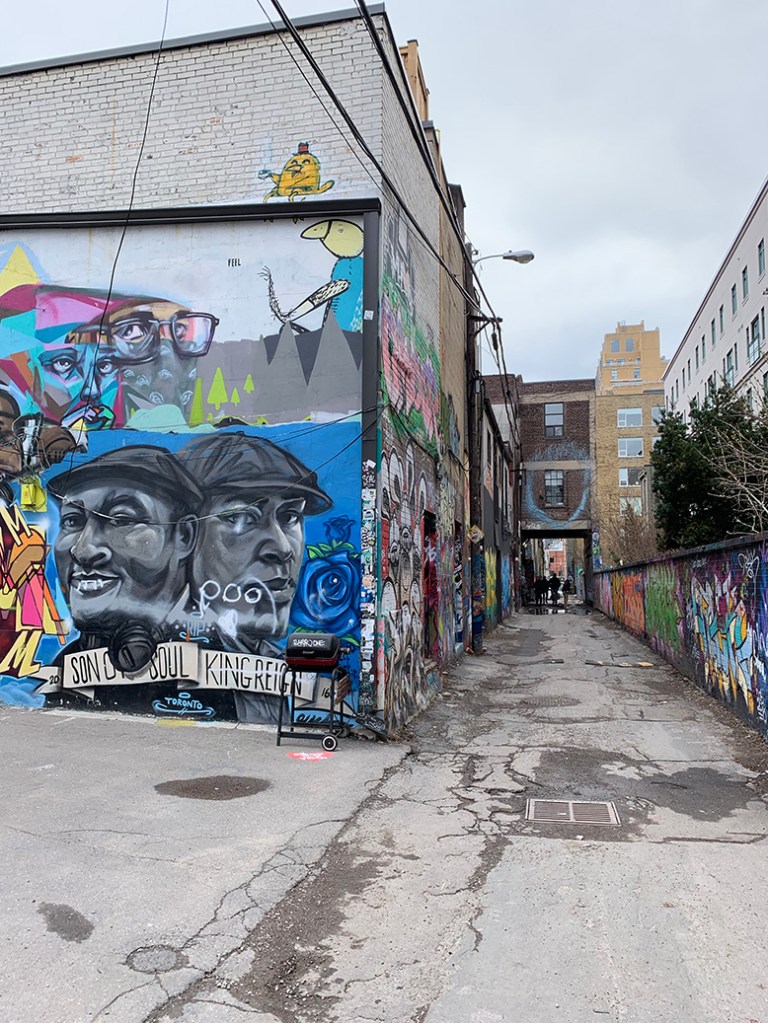 Celou dobu pěkně foukalo a občas byla celkem fuška vůbec jít, takže jsme byli opravdu rádi, že máme kompletní zimní výbavu. Naši kamarádi nás hned naučili místní trik. Na přechodu je třeba zmáčknout tlačítko, hned se schovat za roh a čekat na zelenou v závětří. A tak se od té doby Jára schovával už pořád (i když nefoukalo). Zamířili jsem do Graffity Alley, tedy ulice, kde jsou samé grafity. Místy to nevypadalo zrovna bezpečně, večer bych tam sama asi nešla, ale byli jsme čtyři a světla bylo dost. Některé kresby byly opravdu krásné, jiné spíš takové čmáranice, každopádně to byl zážitek.