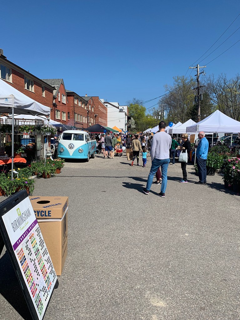 Ještě předtím jsme zašli na farmářský trh do Birminghamu. Byl to vůbec první letošní trh a tržnice byla plná lidí s pejsky na vodítku, rodičů s dětmi, důchodců s plátěnými taškami a mladých párů. Byla tam strašně pěkná atmosféra, na které se podílela i mladá slečna, která moc hezky zpívala. Prošli jsme kolem spousty zajímavých stánků, koupili si nějaké dobroty a vyrazili zpět k autu. Trhy budou každou neděli až do konce listopadu a určitě tam zase zajdeme, hlavně v létě až budou farmáři prodávat svou lokální zeleninu a ovoce.