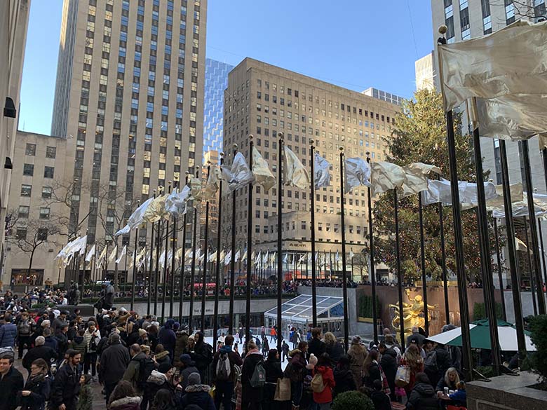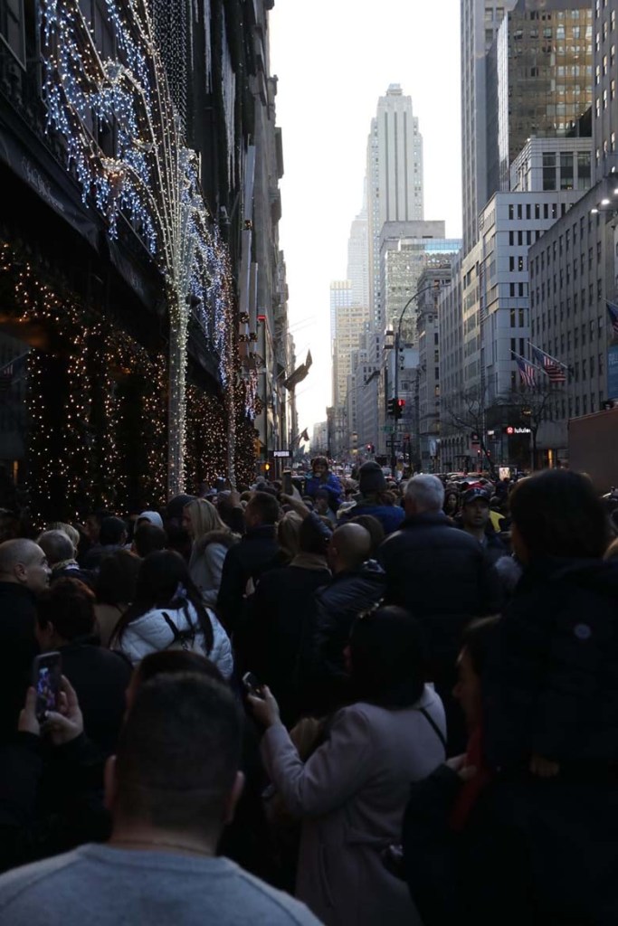 Od muzea jsme se potřebovali dostat na zastávku metra a napadl nás skvělý nápad. Zajít se mrknout na nasvícený strom a vlézt do stanice metra opět u Rockefeller Center. Tak tento nápad vyhlašuji za ten nejhorší, který jsme kdy měli. Obchodní centrum Saks v tu dobu zrovna promítalo světelnou show Frozen na své fasádě a u stromu bylo kvadrilion lidí. V životě jsem neviděla tolik lidí na jednom místě a cítila jsem se dost bezradně. Nějaký strom mi byl najednou tak nějak šumafuk a starala jsem se jen o to, jak udržet pět lidí pohromadě, protože nevím, jak bychom se tam pak našli. Zároveň se mi v hlavě honila velmi nepříjemná myšlenka o tom, že pokud by se náhodou někdo rozhodl to tam vyhodit do povětří, tak člověk nezmůže vůbec, ale vůbec nic. A pokud bych se měla opět vrátit ke Kevinovi ze Sám doma, tak by mě opravdu zajímalo kdy tu večerní scénu u vánočního stromu točili, protože realita měla do happy endu opravdu daleko.