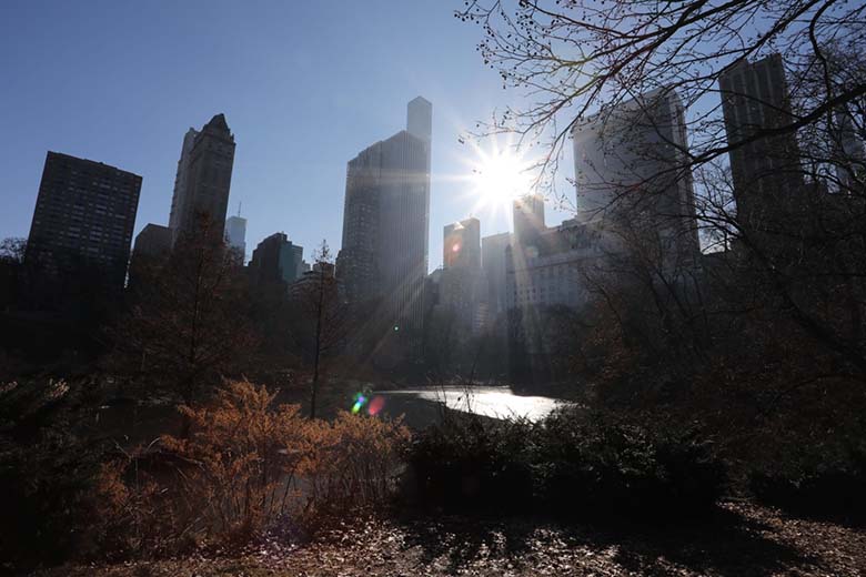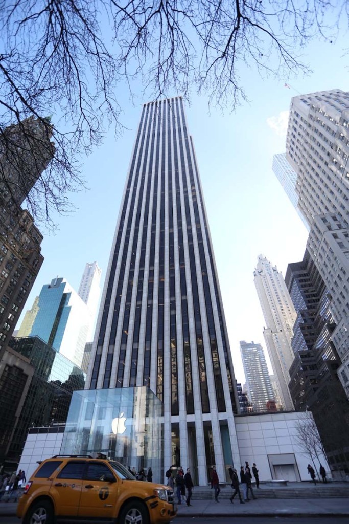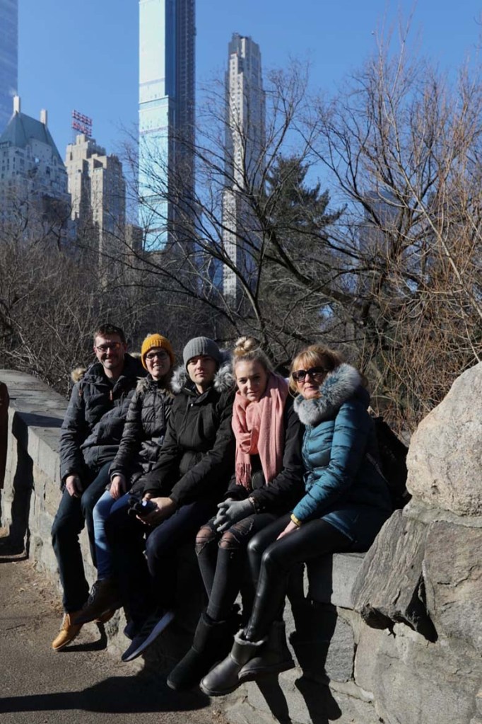 Na rohu parku jsme se podívali na hotel Plaza kde bydlel Kevin, vyfotili ikonickou skleněnou krychli obchodu Apple a zapadli nasát trochu přírody. Tam nás začali otravovat prodejci všeho možného. Jednak rádoby mniši prodávající náramky a odznáčky, které nám cpali až před obličej, v nabídce byla také vyjížďka v kočáru, který táhl buď kůň nebo člověk na kole a cena byla neodolatelných 3-5 dolarů za minutu jízdy. Když jsme je ale úspěšně odignorovali, dostali jsme se dál do parku kde bylo opravdu krásně. Měli jsme opět jasnou oblohu a celkem teplo a tak jsme vylezli na skály, podívali se na jezírko, došli omrknout bruslařský ovál, který byl narozdíl od toho v Rockefeller Center opravdu obrovský a během bruslení jste se mohli kochat mrakodrapy, ale zároveň mít pocit, že jste tak trochu v přírodě. Stejně tak obrovská však byla i fronta a my měli ještě pěkně nabitý program. Vrátili jsme se proto na šestou Avenue a slíbili si procházku v Central Parku na středu. U šesté Avenue byli ulice zavřené, protože zrovna pokračovali ve stavbě mrakodrapu a asi nechtěli, aby někdo dostal kladivem padajícím ze stého patra do hlavy. Tak jsme se přesunuli na Broadway a tou mířili na jih. Já měla o Broadway velmi mylnou představu a opravdu jsem netušila, že má přes padesát kilometrů.
