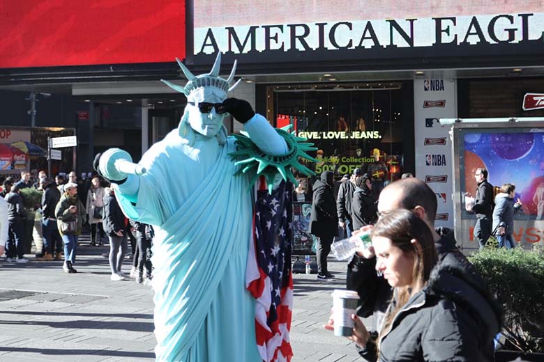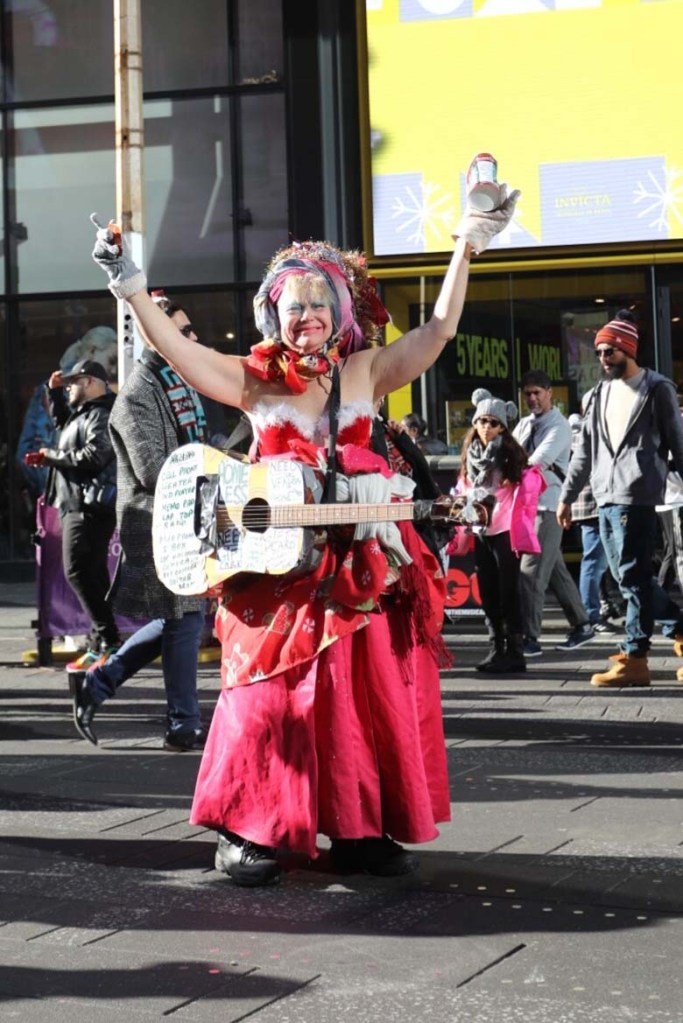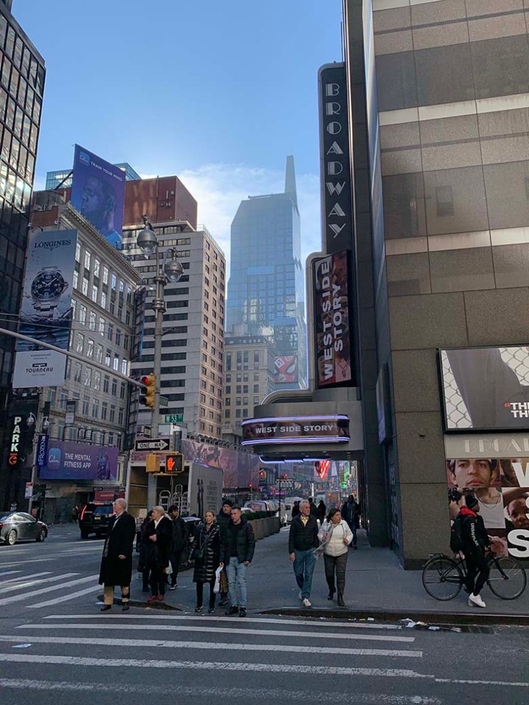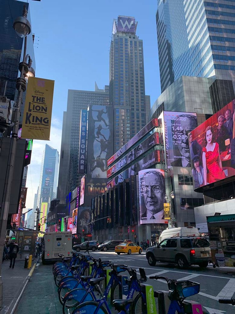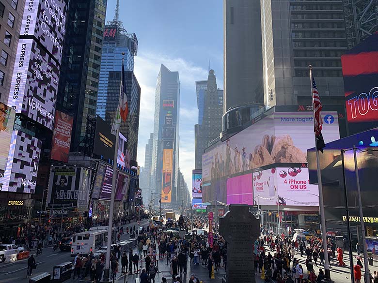 K vánoční atmosféře nepřispívalo ani jasné nebe a třináct stupňů nad nulou. Ale na počasí si stěžovat rozhodně nechci, to jsme měli naprosto bombastický. Po Broadway jsme došli až na Times Square. Tam jsme narazili asi na nejvíc bizarních lidí převlečených za obrovské pandy, sochu svobody, postavy superhrdinů a nebo rozeřvanou, polonahou, zmalovanou ženu (nebo možná muže) s dredy a kytarou. Times Square žije hlavně na Silvestra, kdy se na něm koná známý “Ball Drop”, ale když jsme viděli jak to tam vypadalo během normálního dne, nedokážu si to na Silvestra představit. A ani nechci.