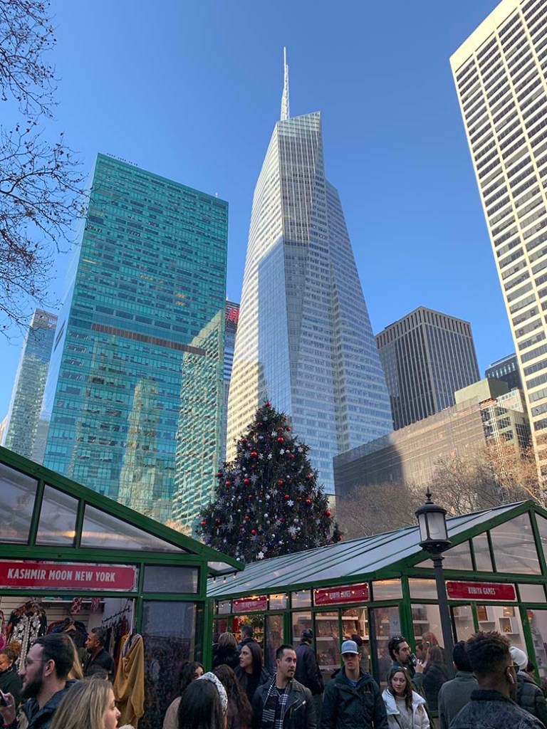 Dalším překvapením byla nepřítomnost vánoční výzdoby. Našli jsme sice bruslařské ovály, vánoční strom a je pravda, že Bryant park byl moc pěkně nazdobený a byly tam vánoční trhy, ale jinak byly ulice prázdné. Obchodní centrum Macy’s, které je vánoční výzdobou vyhlášené, mělo různé dekorace a zajímavé a interaktivní výlohy (třeba pohyblivou hračku myšky, která dělala v umělém sněhu andělíčka), ale světýlka nebo věnce, kterých máme v Michiganu plný Birmingham, jsme moc nepotkali. Nejkrásnější výzdobu mělo podle mě nádraží Grand Central. Já ale měla opět mylnou představu, že bude celý Manhattan zabalený do vánočních mašlí, ozdob a světýlek.