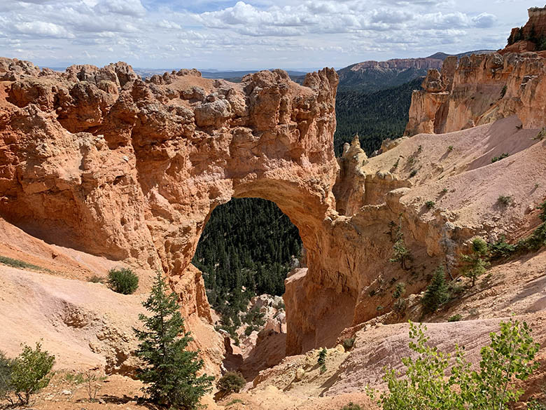 Dojeli jsme až na poslední vyhlídku zvanou “Rainbow Point”, která je necelých 2800 metrů nad mořem. To se nám ani nechtělo věřit. Odtud jsme se vraceli po cestě směrem ke vchodu a zastavili snad na každé vyhlídce která tam byla. Pokaždé byl pohled trochu jiný a někdy se objevily i přírodní skalnaté oblouky. U vchodu jsme nezapomněli zastavit v turistickém centru a podívat se na nabídku trik a mikin. Já jsem si totiž chtěla nějaké triko z parku pořídit, ale tak dlouho jsem se rozmýšlela z kterého, že nakonec nemám žádné. Typická váha…