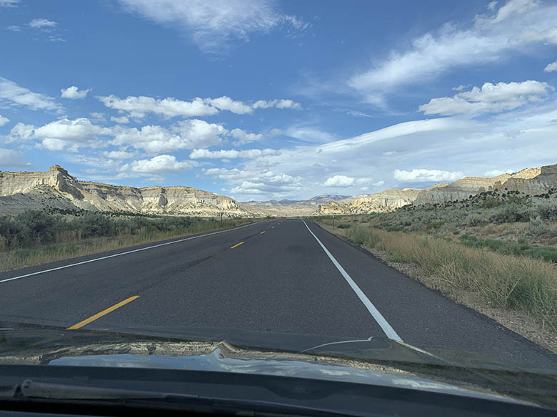 Z Bryce Canyonu jsme se vydali do dalšího parku. Zvolili jsme o trošku delší trasu, než nabízela navigace a udělali jsme dobře. Cesta vedla netčenou přírodou a na těch dvě stě kilometrech bylo jen pět malých vesniček. Přestože na téhle cestě nejsou žádné “atrakce”, byla silnice ve vynikajícím stavu. Uháněli jsme po prázdné cestě, sledovali krajinu a nemohli si odpustit zapřemýšlet nad tím, jak tady ta hrstka lidí co bydlí v těch pěti vesnicích funguje. Já přemýšlela jak daleko to mají do nejbližšího obchodu, jestli se dostanou k lékaři a kdy naposled vlastně u nějakého byli, kde mají nejbližší benzínku a čím se vůbec živí. No jo, holka z Prahy, která měla všechno přímo pod nosem a ani teď tomu v Michiganu není jinak.