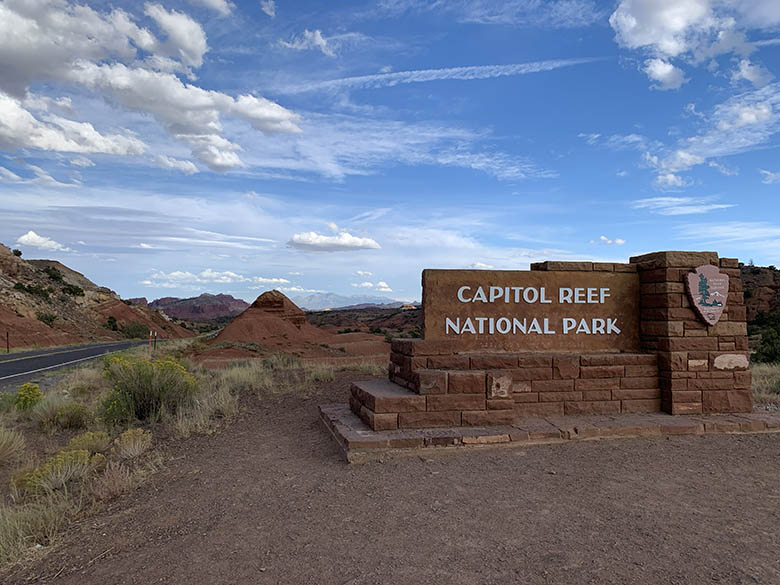 Postupně jsme se blížili ke Capitol Reef a začínalo klesat sluníčko. Díky tomu byl pohled na rudé skály ještě krásnější. Po cestě jsme koukali na různé skalnaté útvary, které byly podobně jako v Prachovských skalách pojmenované podle toho co připomínaly. Na vyhlídce zvané Panorama to byla naprostá bomba, tam jsme nakonec zůstali docela dlouho. Pak už ale slunce rapidně mizelo a my museli do kempu. Chtěli jsme stihnout za světla alespoň postavit stan.