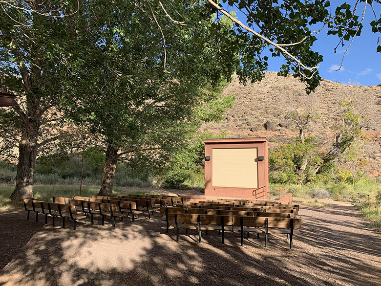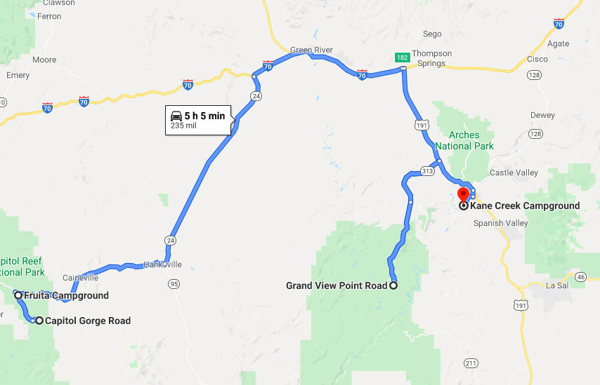 Kemp ve vesnici Fruita byl opravdu tak úžasný jak Jára sliboval. Prakticky ze stanu jsme mohli pozorovat červené skály, procházet se u řeky, která kempem protékala nebo si dojít do sadu utrhnout čerstvé ovoce. V sadu byl i amfiteátr kde večer rangeři pořádali výukové akce pro děti. Ten večer zrovna povídali o sovách. Postavili jsme stan, uvařili si večeři a odpočívali. Dole na louce se zrovna pásla srnka a s těmi skálami v pozadí to bylo opravdová pohádka. Kemp rozhodně doporučujeme, ale určitě je potřeba si ho zarezervovat hodně dopředu, protože je rychle plný. Obzvlášť v sezóně.