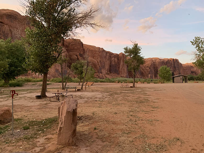 Čas byl neúprosný a náš ještě čekala hodina cesty do kempu. Tentokrát jsme spali u řeky Colorado v kempu, který byl dost strašidelný, ale svým způsobem krásný. Z městečka Moab jsme jeli podél řeky pořád dál a dál od civilizace až jsme narazili na domek a prázdné prostranství, které připomínalo kemp. Když jsem vystoupila z auta a mířila k domečku, rozeběhl se proti mě hlídací pes, který vypadal, že tak měsíc nejedl. Rychlostí blesku se blížil a já už se viděla s prokousnutým krkem. Naštěstí ho pár metrů přede mnou zastavil provaz, který měl přivázaný k obojku. Jak běžel rychle tak s ním natažený provaz trhl a pes vyletěl do vzduchu. Po dopadu se oklepal a odběhl pryč. Uff! Mezitím vylezla z domečku paní majitelka, zkontrolovala rezervaci a přidělila nám místo.