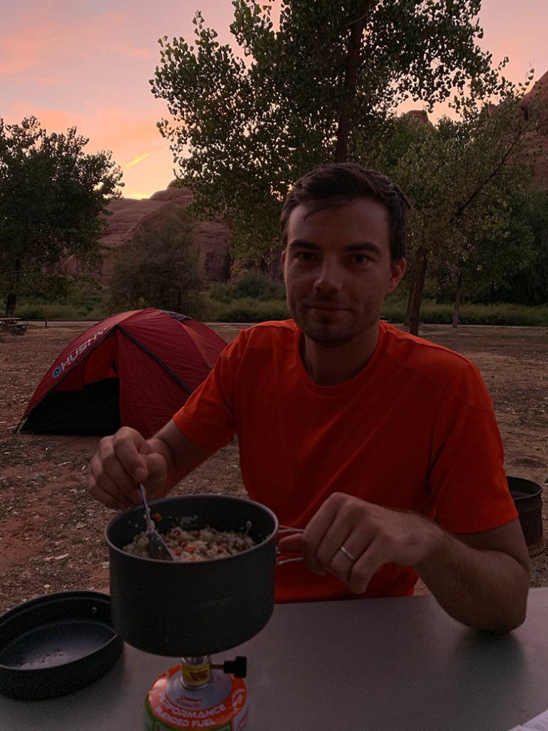 Vypadalo to na celkem klidnou noc. Nad ránem ale do kempu přijeli nějací němci, kteří se rozhodli začít opravovat motorku. Ve čtyři hodiny ráno se snažili asi tak padesátkrát nastartovat motorku přímo u našeho stanu. Vážně? Tady je asi tak třista míst na stanování a jen jeden stan a oni se upíchnou vedle nás. A k tomu se ještě hlasitě dohadovali. Když se zdálo, že to vzdali, cítila jsem jak usínám. A právě v tom okamžiku kdy vám začne tělo klesat do té pěnové karimatky pod vámi začali startovat zase. Díky hoši, díky! Vstáváme ještě před šestou, abychom byli co nejdřív na začátku jednoho z trailů v národním parku Arches, a vy teď nutně musíte opravovat motorku? Nějakým zázrakem jsme ještě usnuli a probudili se do krásného dne. Chlapíci byli pryč, ale stejně jsem jim alespoň pomyslně dala jednu za uši.