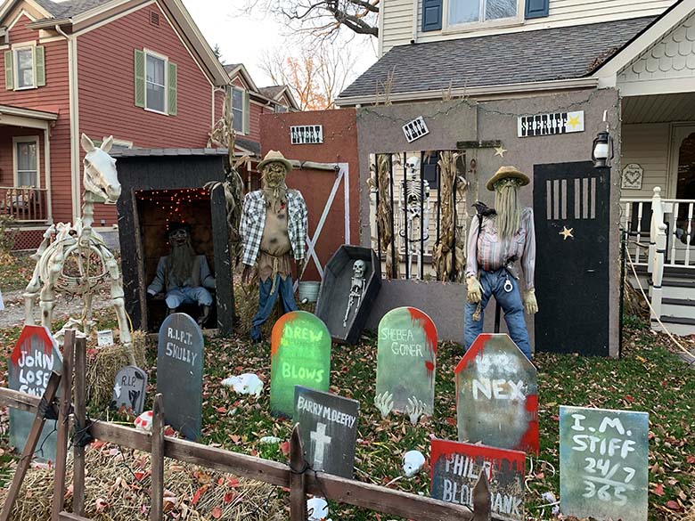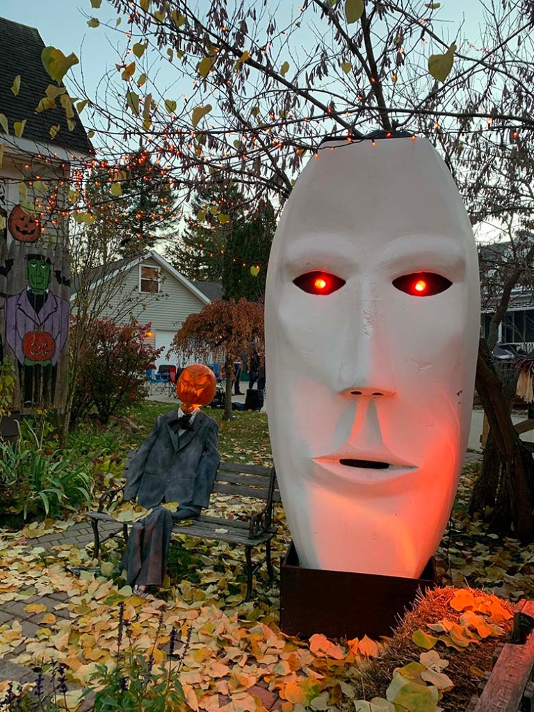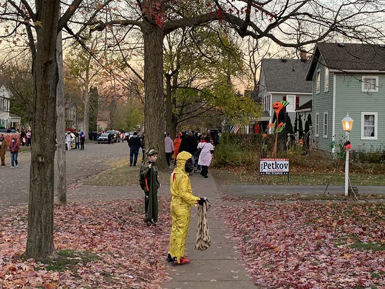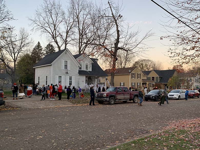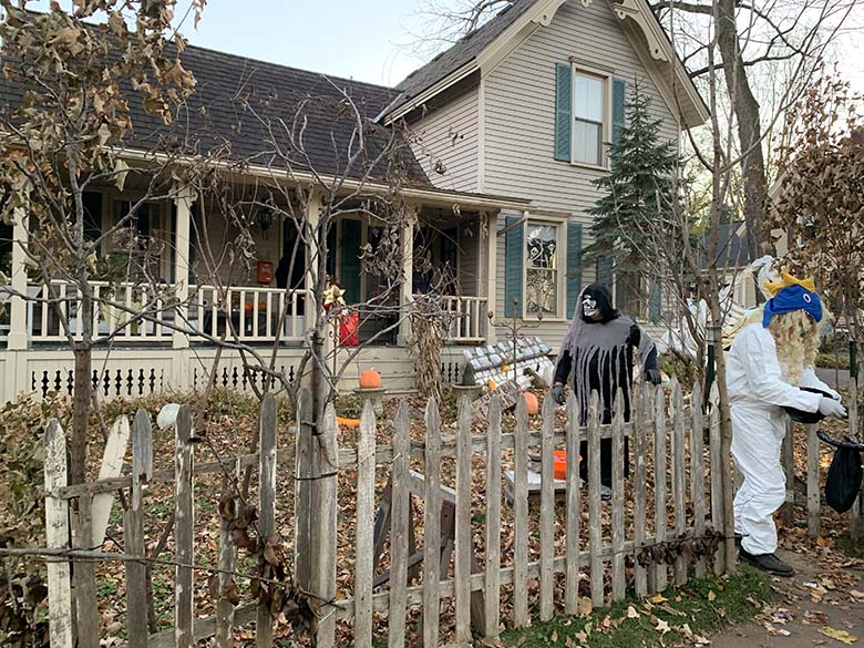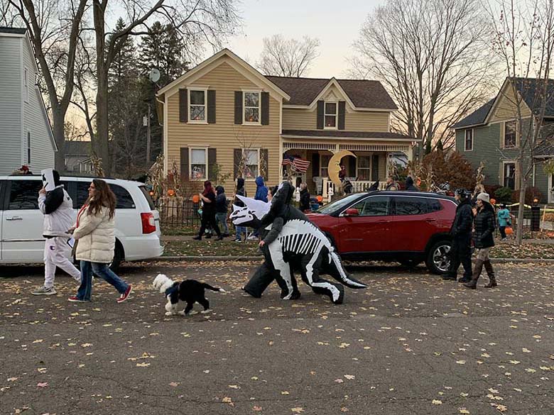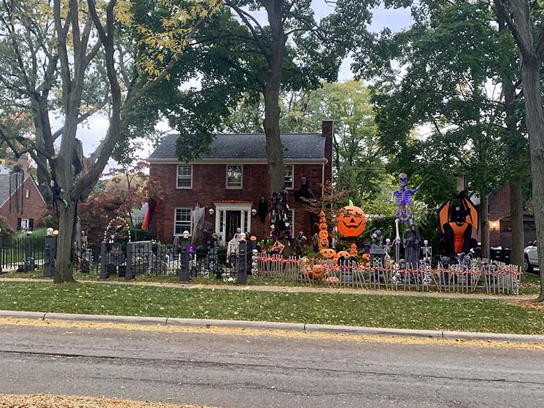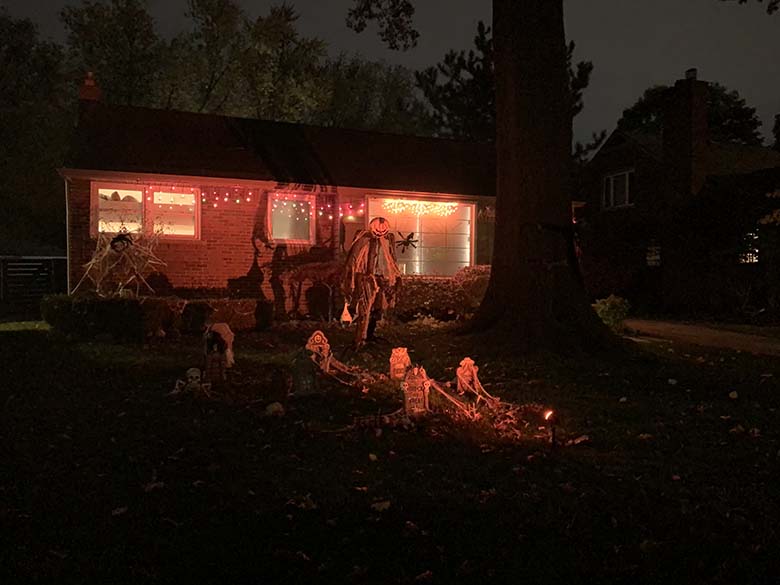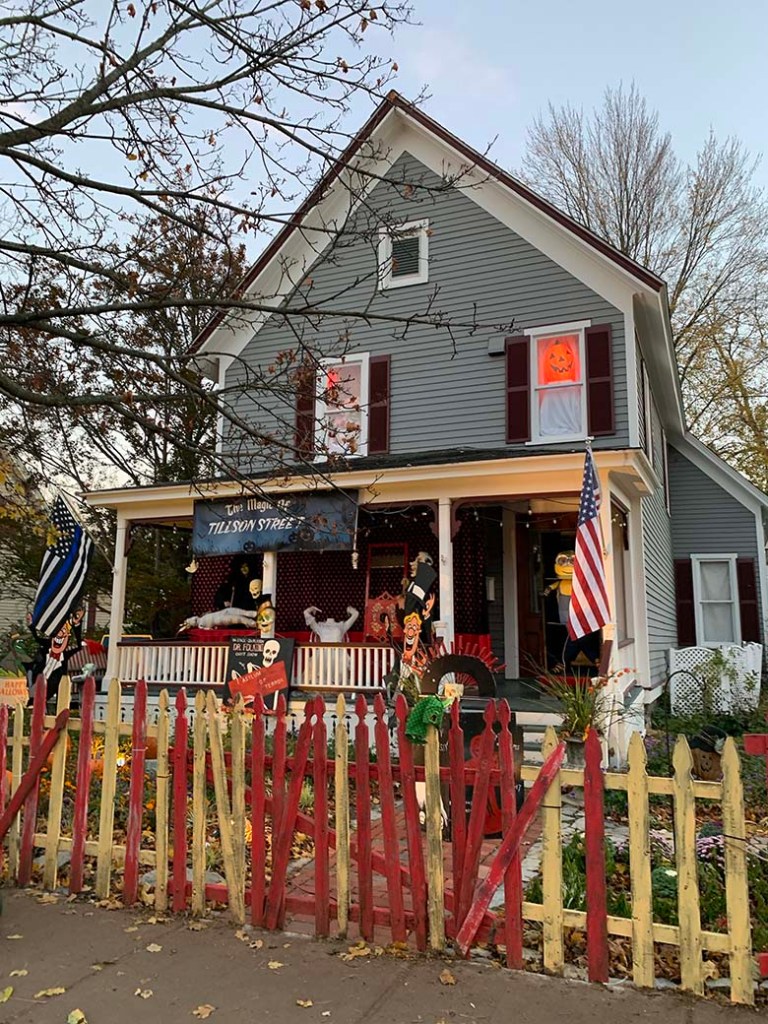 Tím, že na letošní Halloween vyšlo naprosto úžasné počasí jsme úplně spontánně vyrazili do městečka Romeo, které je po celém Michiganu a možná i USA vyhlášené svou ulicí “Tillson Street”. Jde o ulici kde místní každoročně začátkem října přeměňují své domy k nepoznání. A to myslím doslova! Za normálních okolností připravují pro děti i různé aktivity, hned na začátku ulice je také strašidelný dům a všichni majitelé jsou venku a dávají kolemjdoucím dětem sladkosti. Tento rok bylo hodně aktivit zrušeno a některé domy se výzdob ani neúčastnily. Přesto to byla neuvěřitelná podívaná! Jak na domy, z kterých občas opravdu šla hrůza, tak na širokou paletu kostýmů, které nosili děti i dospělí. Mně třeba vystrašil pán převlečený jako zombie, který se vedle mě zastavil s nožem v ruce a jen tak zíral.